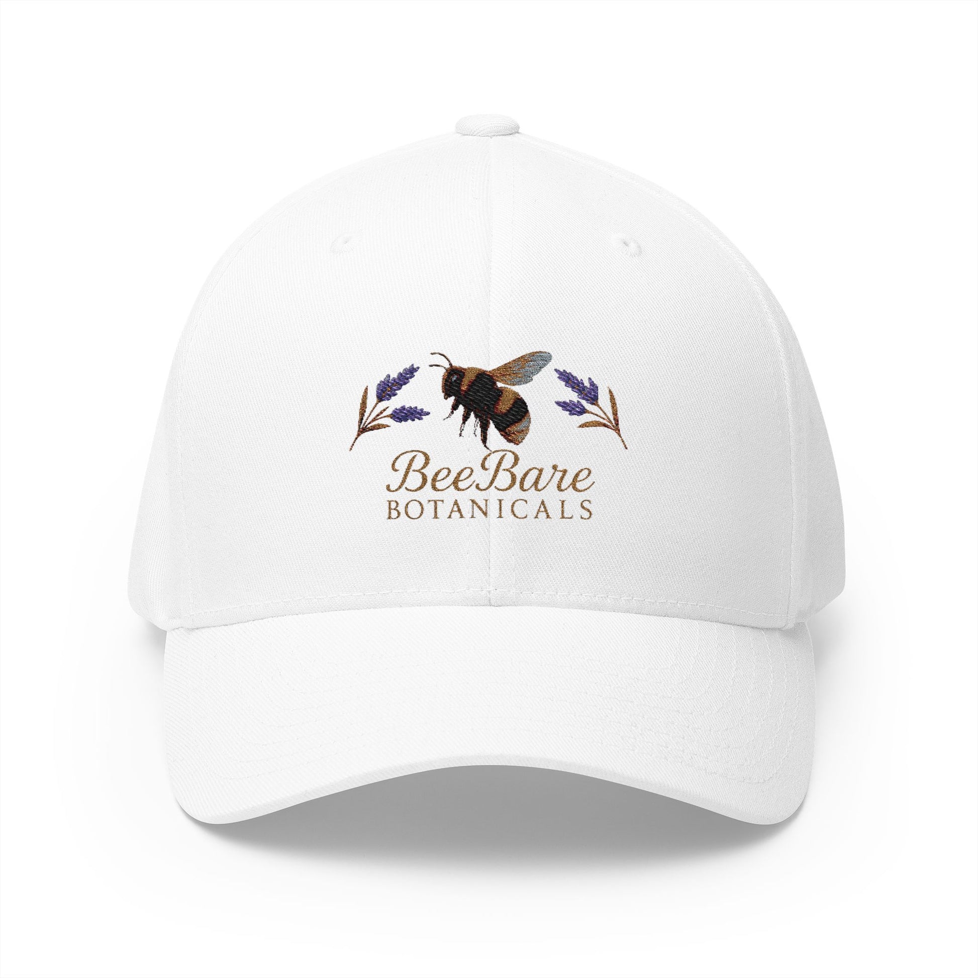 A Bee Bare Botanicals cap featuring intricate embroidery on the front, giving off a nature-inspired and stylish vibe. Perfect for casual wear or outdoor activities. Ideal for nature lovers, gardeners, and those who appreciate botanical designs. Great for gifting on birthdays, Mother's Day, or for a gardening enthusiast.